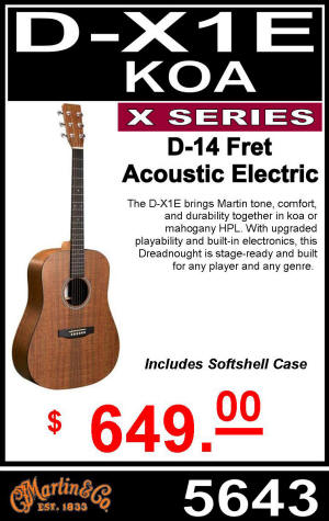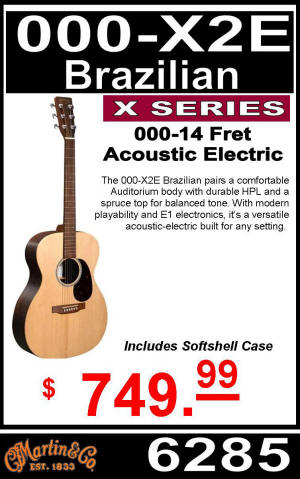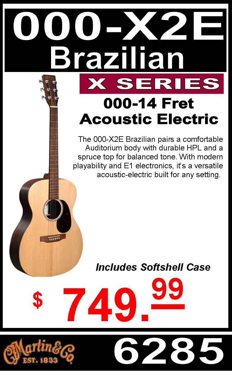 X Series (Includes Soft Gig Bag) Martin DX Johnny Cash X-Series Guitar with Soft Gig Bag - $699.00 Martin D-X1E Koa Guitar with Softshell Case - $649.00 Martin 00-X2E Cocobolo X-Series Acoustic Electric Guitar with Softshell Case - $749.99 Martin D-X2E Brazilian X-Series Acoustic Electric Guitar with Softshell Cae - $749.99 Martin 000-X2E Brazilian X-Series Acoustic Electric Guitar with Softshell Case - $749.99 Martin D-X2E Billy Strings X-Series Guitar with Soft Shell Case - $949.00