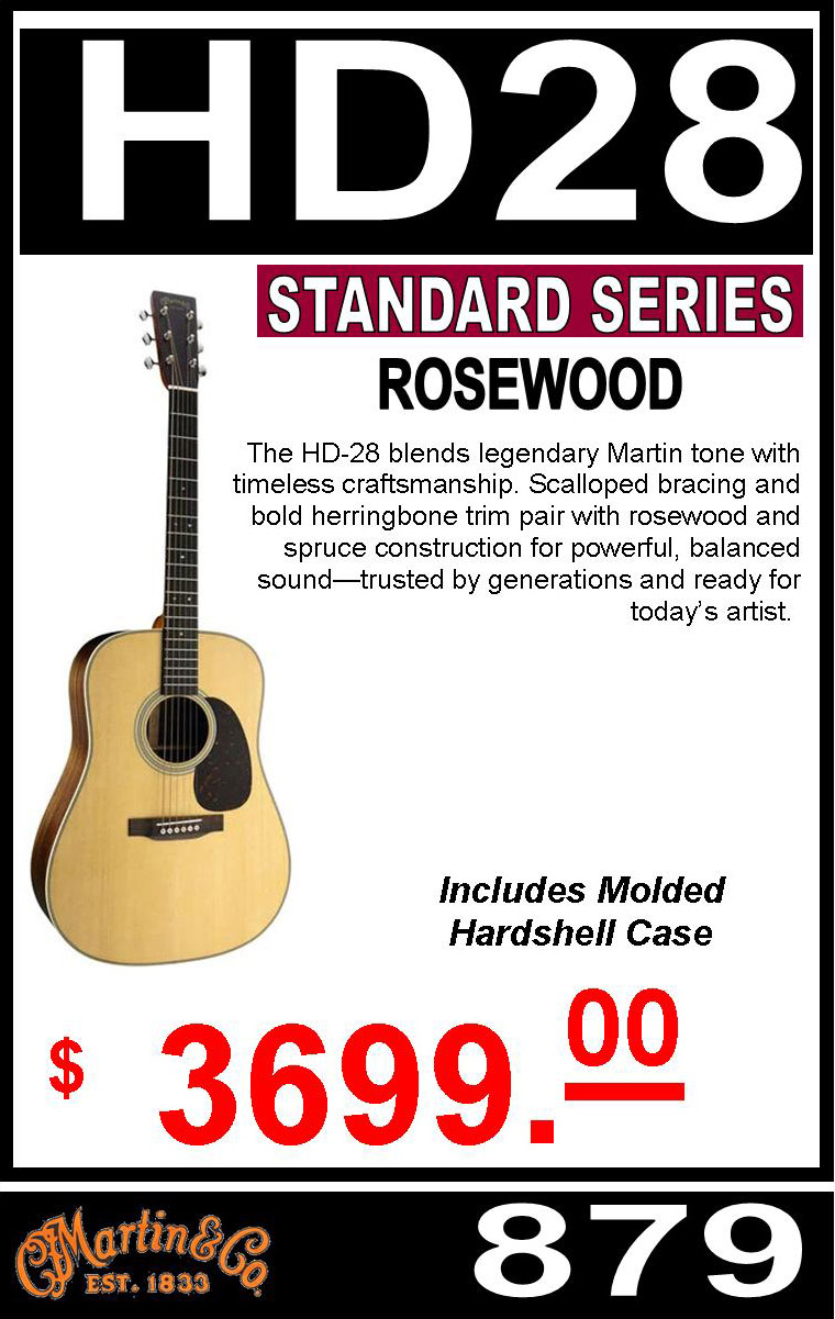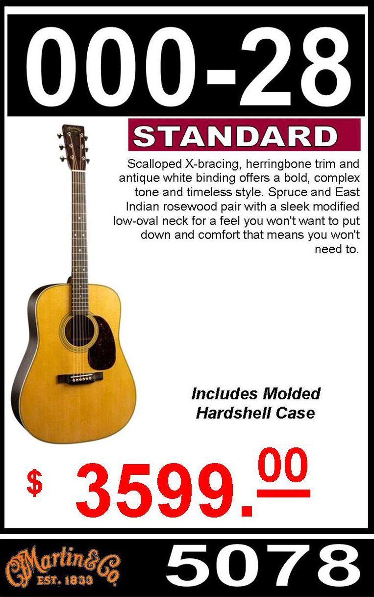 Standard Series (Prices includes Hardshell Case) Martin D-18 Satin 1935 Burst Standard Series Guitar with Hardshell Case - $2599.99 Martin 000-28 Standard Series Guitar with Molded Hardshell Case - $3599.00 Martin HD-28 Standard Series Guitar with Molded Hardshell Case - $3699.00 Martin D-35 Standard Series Guitar with Molded Hardshell Case - $3699.00 Martin J-28E 1935 Burst Standard Series Guitar with Molded Hardshell Case - $8199 15 Series (Prices include Hardshell Case or Gig Bag) Martin 000-15M 15-Series Mahogany Guitar with Soft Shell Case - $1799.00 Martin D-15M 15-Series Mahogany Guitar with Soft Shell Case - $1799.00 Martin 000-15M 15-Series Streetmaster Guitar with Soft Shell Case - $1899.00 Martin 000-15SM 15-Series Guitar with Soft Shell Case - $2099.99 16 & 17 Series (Prices include Soft-Shell Case) Martin 000C12-16E Nylong 16-Series Guitar with Soft Shell Case - $2299.99