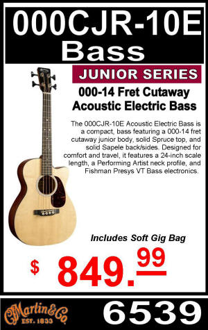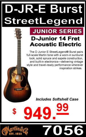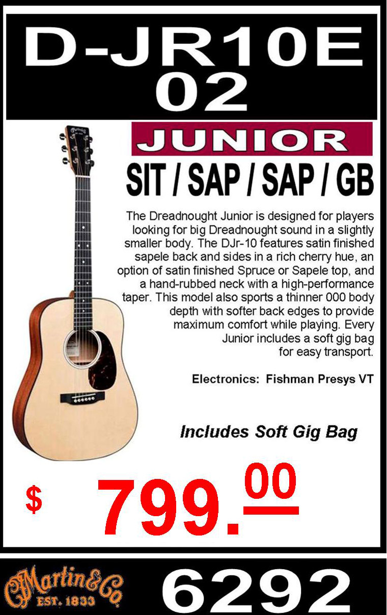 JUNIOR Series (Includes Soft Gig Bag) Martin 000CJR-10E Junior Series Acoustic Electric Guitar with Soft Gig Bag - $749.00 Martin D-JR10E-02 Junior Series Acoustic Electric Guitar with Soft Shell Bag - $799.00 Martin 000CJR-10E Junior Series Acoustic Electric Bass Guitar with Soft Gig Bag - $849.99 Martin D-JR-E Burst StreetLegend Junior Series Acoustic Electric Guitar with Soft Shell Case - $949.99