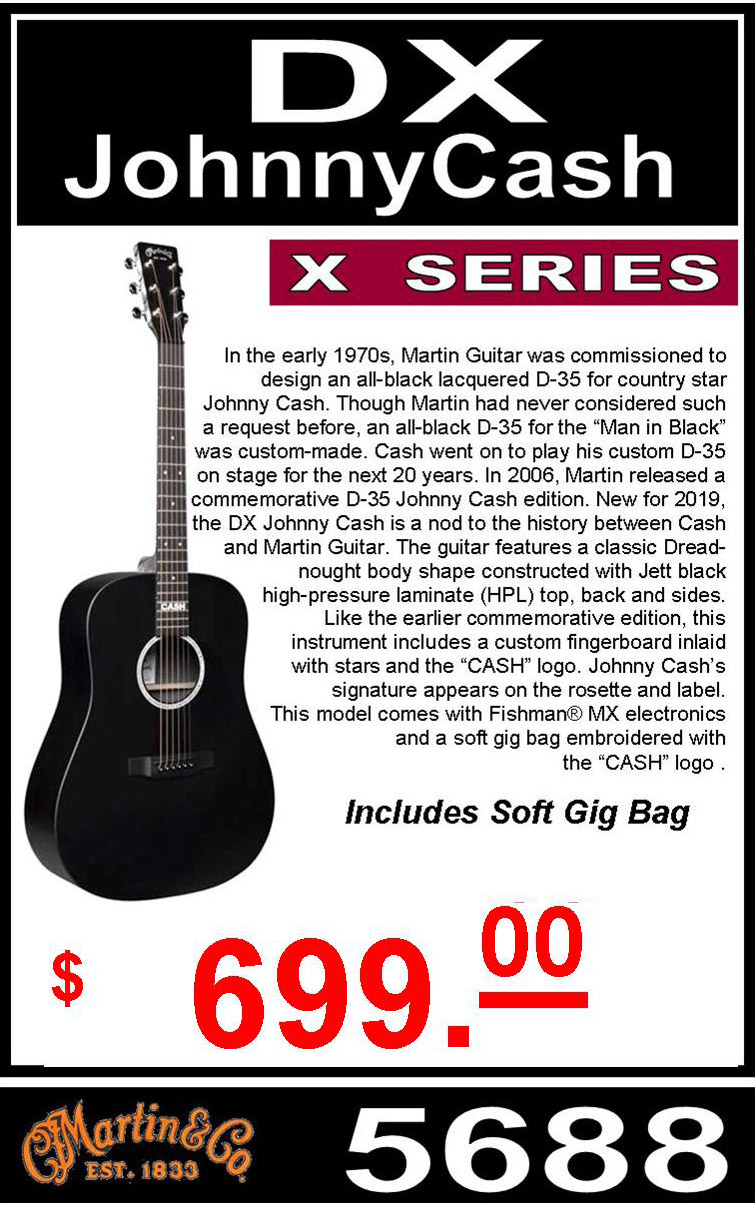 Custom & Special Editions (Includes Soft Gig Bag) Martin DX-JohnnyCash X-Series Guitar with Soft Gig Bag - $649.00 Martin 000-JR10E Artist Junior Series Shawn Mendes Guitar with Soft Gig Bag - $799.00 Martin D-X2E Billy Strings Guitar - $899.00