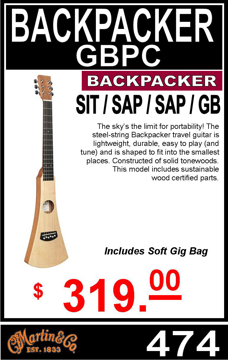 Little Martin Series (Includes Soft Gig Bag) Martin LXK2 Koa Little Martin Series Guitar with Soft Gig Bag - $449.00 Backpacker Series (Includes Padded Gig Bag) Martin Backpacker Steel String with Gig Bag - $319.00