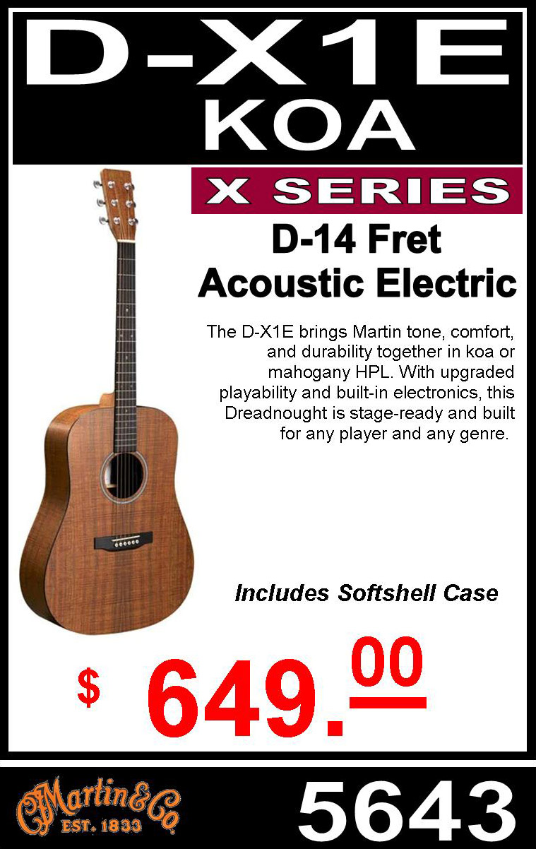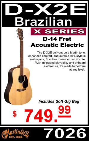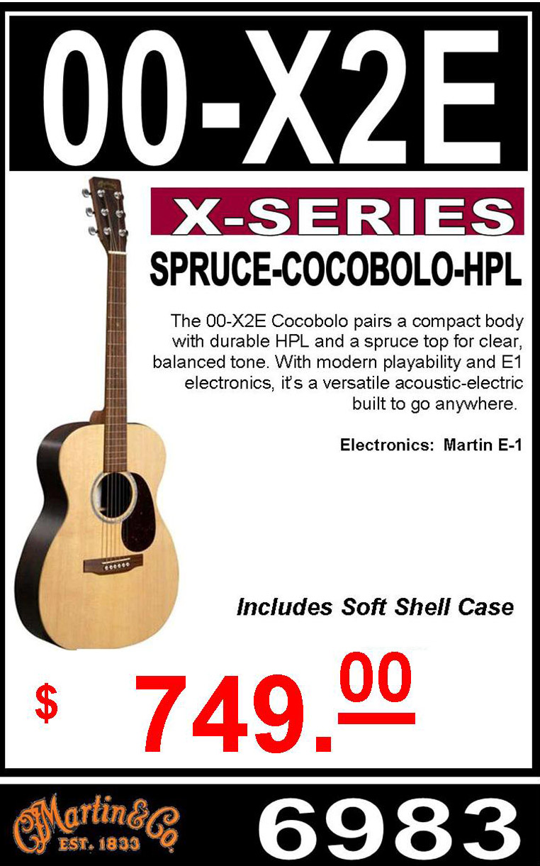 X Series (Includes Soft Gig Bag) Martin DX Johnny Cash X-Series Guitar with Soft Gig Bag - $699.00 Martin D-X1E Koa Guitar with Softshell Case - $649.00 Martin 00-X2E Cocobolo X-Series Acoustic Electric Guitar with Softshell Case - $749.99 Martin D-X2E Brazilian X-Series Acoustic Electric Guitar with Softshell Cae - $749.99 Martin 000-X2E Brazilian X-Series Acoustic Electric Guitar with Softshell Case - $749.99 Martin D-X2E Billy Strings X-Series Guitar with Soft Shell Case - $949.00