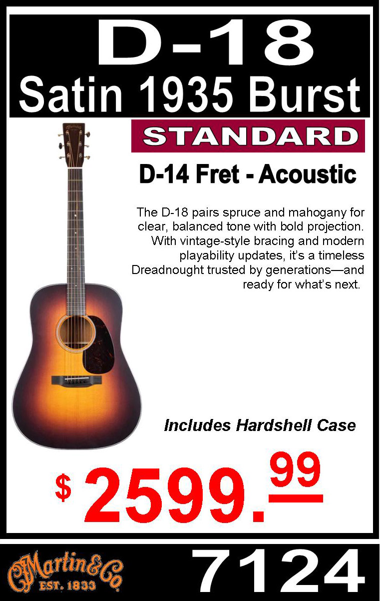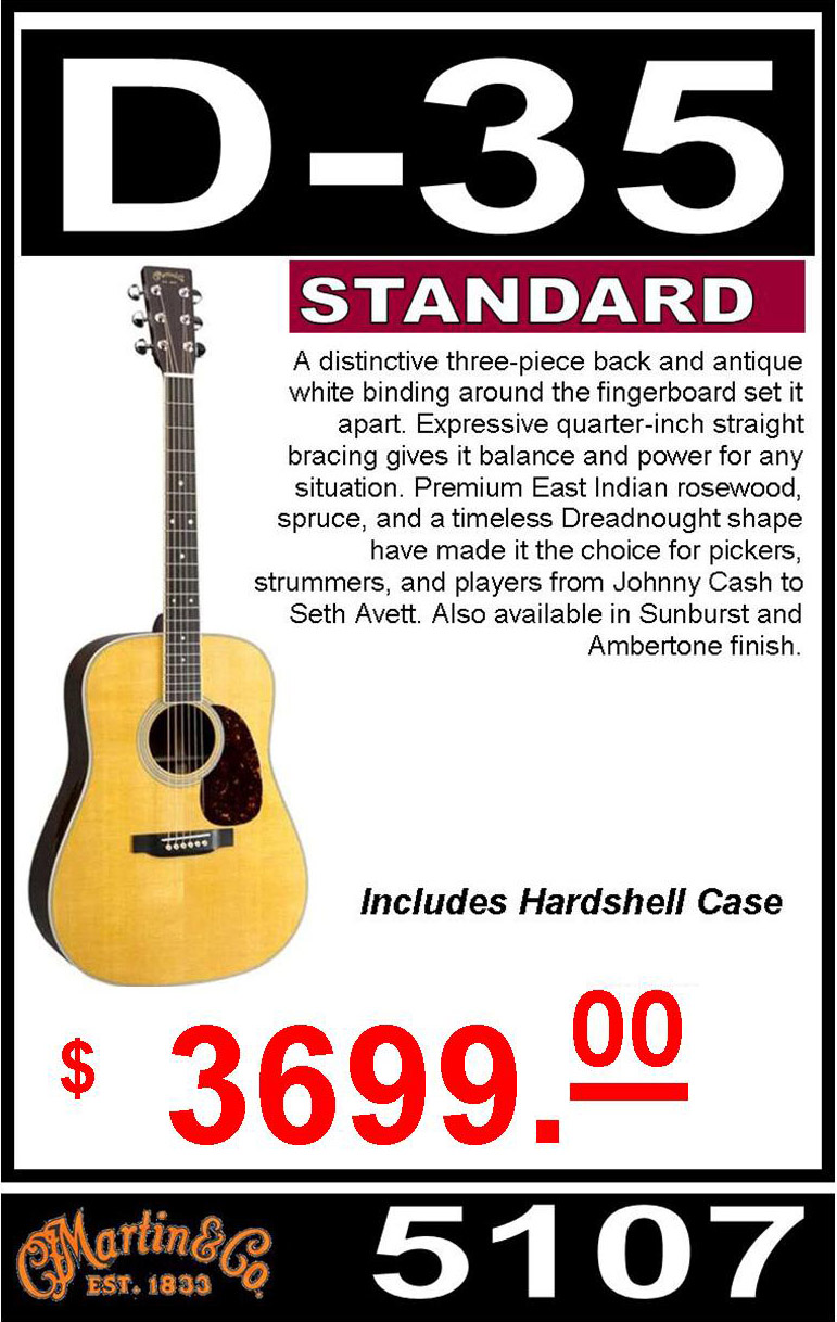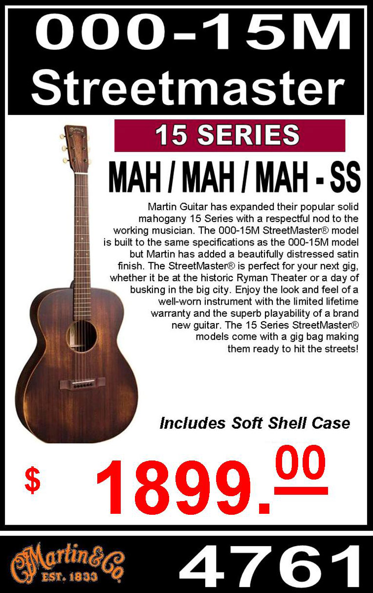 Standard Series (Prices includes Hardshell Case) Martin D-18 Satin 1935 Burst Standard Series Guitar with Hardshell Case - $2599.99 Martin 000-28 Standard Series Guitar with Molded Hardshell Case - $3599.00 Martin HD-28 Standard Series Guitar with Molded Hardshell Case - $3699.00 Martin D-35 Standard Series Guitar with Molded Hardshell Case - $3699.00 Martin J-28E 1935 Burst Standard Series Guitar with Molded Hardshell Case - $8199 15 Series (Prices include Hardshell Case or Gig Bag) Martin 000-15M 15-Series Mahogany Guitar with Soft Shell Case - $1799.00 Martin D-15M 15-Series Mahogany Guitar with Soft Shell Case - $1799.00 Martin 000-15M 15-Series Streetmaster Guitar with Soft Shell Case - $1899.00 Martin 000-15SM 15-Series Guitar with Soft Shell Case - $2099.99 16 & 17 Series (Prices include Soft-Shell Case) Martin 000C12-16E Nylong 16-Series Guitar with Soft Shell Case - $2299.99