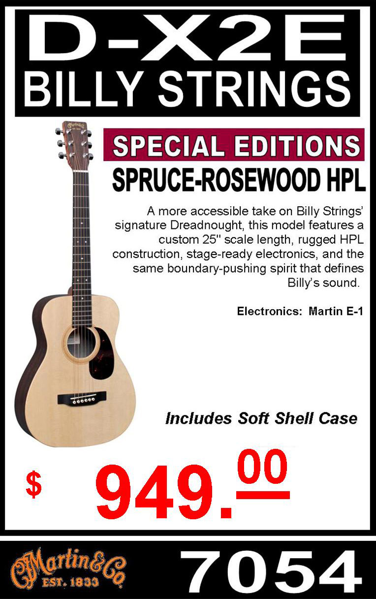 Custom & Special Editions (Includes Soft Gig Bag) Martin DX-JohnnyCash X-Series Guitar with Soft Gig Bag - $649.00 Martin 000-JR10E Artist Junior Series Shawn Mendes Guitar with Soft Gig Bag - $799.00 Martin D-X2E Billy Strings Guitar - $899.00