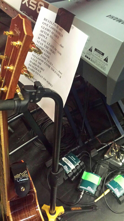 One of our customers passed on this photos to us of Peter Cetera in concert at the River Wind Casino in Norman on September 18th of 2015. Peter Cetera was an original member of the group Chicago, whose solo hits include "Glory of Love" and "Next Time I Fall" (with Amy Grant). A couple of our Firey Bros. Music guitar straps were used on the bass and acoustic guitar (shown with song list). We don't know the exact connection in how they got there, but it's a neat little piece of concert memorabilia