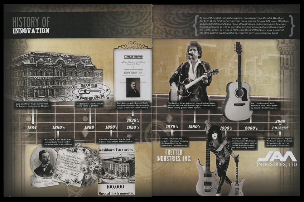 As a tribute to our heritage and the heritage of American acoustic music, Washburn is bringing recreations of its early 20th century acoustics back. On the occasion of our 130th anniversary we are proud to be reintroducing the Lakeside Jumbo as well as the model 5249 "Solo" acoustic guitars to the 2013 Washburn lineup. Using modern materials and techniques we continue to improve upon our highly regarded instruments of the past as we look to bold new designs in a bright future. Since our beginning in 1883, Washburn continues to build upon our foundation of high quality craftsmanship down to the very last detail. Our acoustics embody thoughtful details like easy playability, touch sensitive feel, and inspiring tone in every guitar.
