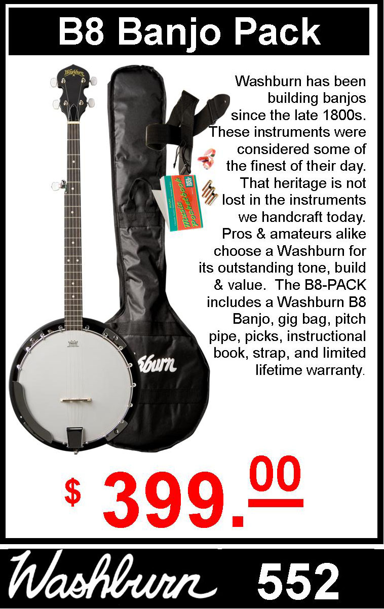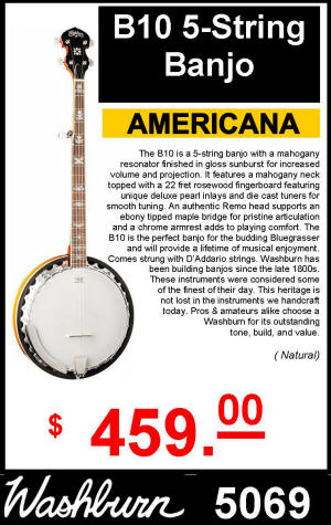 BANJOS Washburn B8 Banjo Pack with Accessories and Gig Bag - $399.00 Washburn B10 5-String Banjo - $459.00