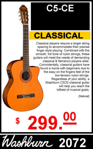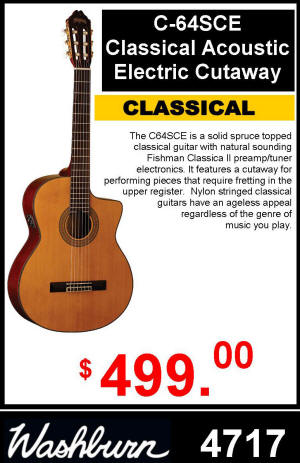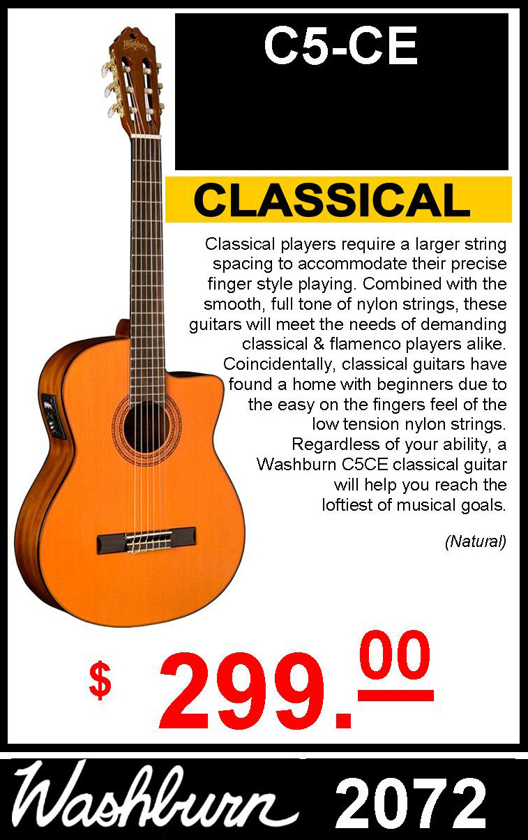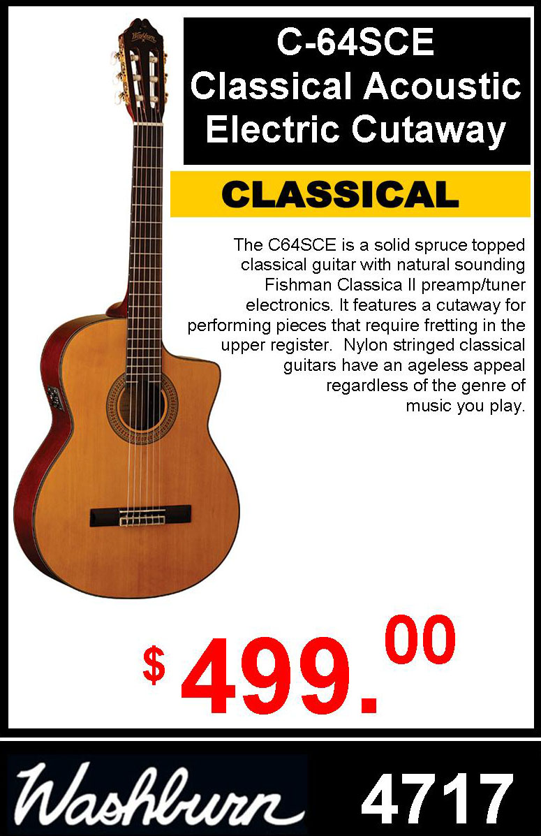 CLASSICAL GUITARS Washburn C5-CE Acoustic_Electric Classical Guitar - $299.00 Washburn C64SCE Classical Acoustic Electric Cutaway Guitar - $499.00