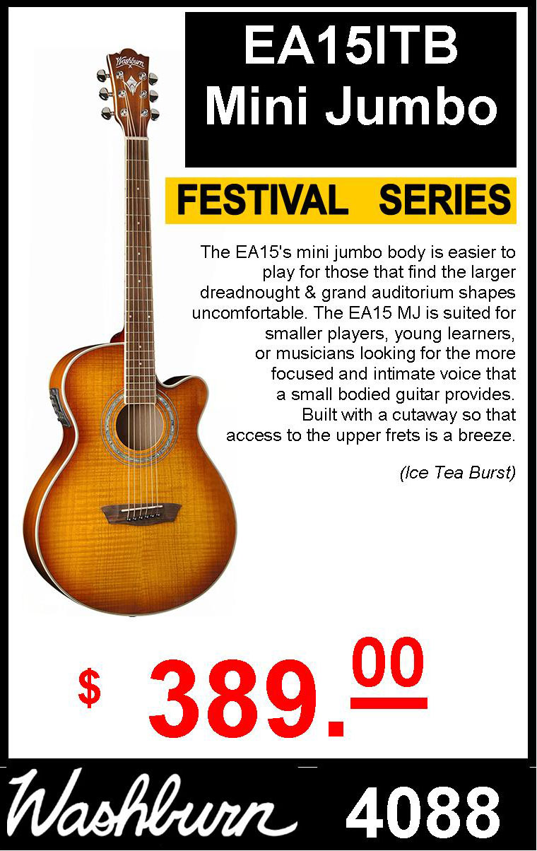 FESTIVAL SERIES GUITARS Washburn EA15ITB Acoustic Electric Guitar (Ice Tea Burst) - $389