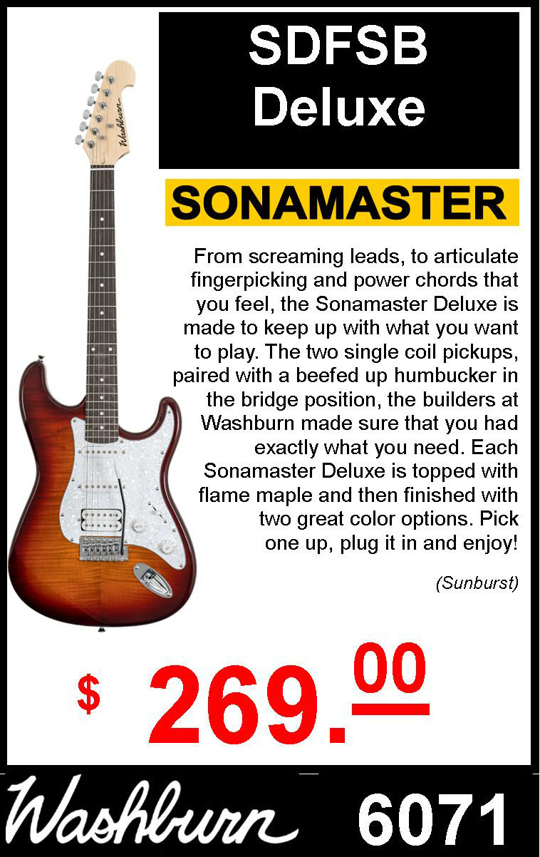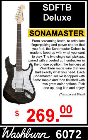 ELECTRIC GUITARS and ELECTRIC BASSES Washburn Sonamaster SDFSB Electric Guitar (Sunburst) - $269.00 Washburn Sonamaster SDFTB Electric Guitar (Transparent Black) - $269.00