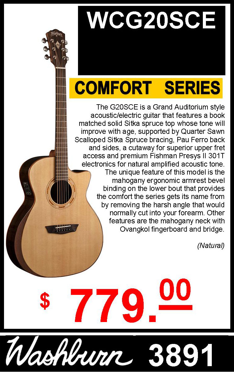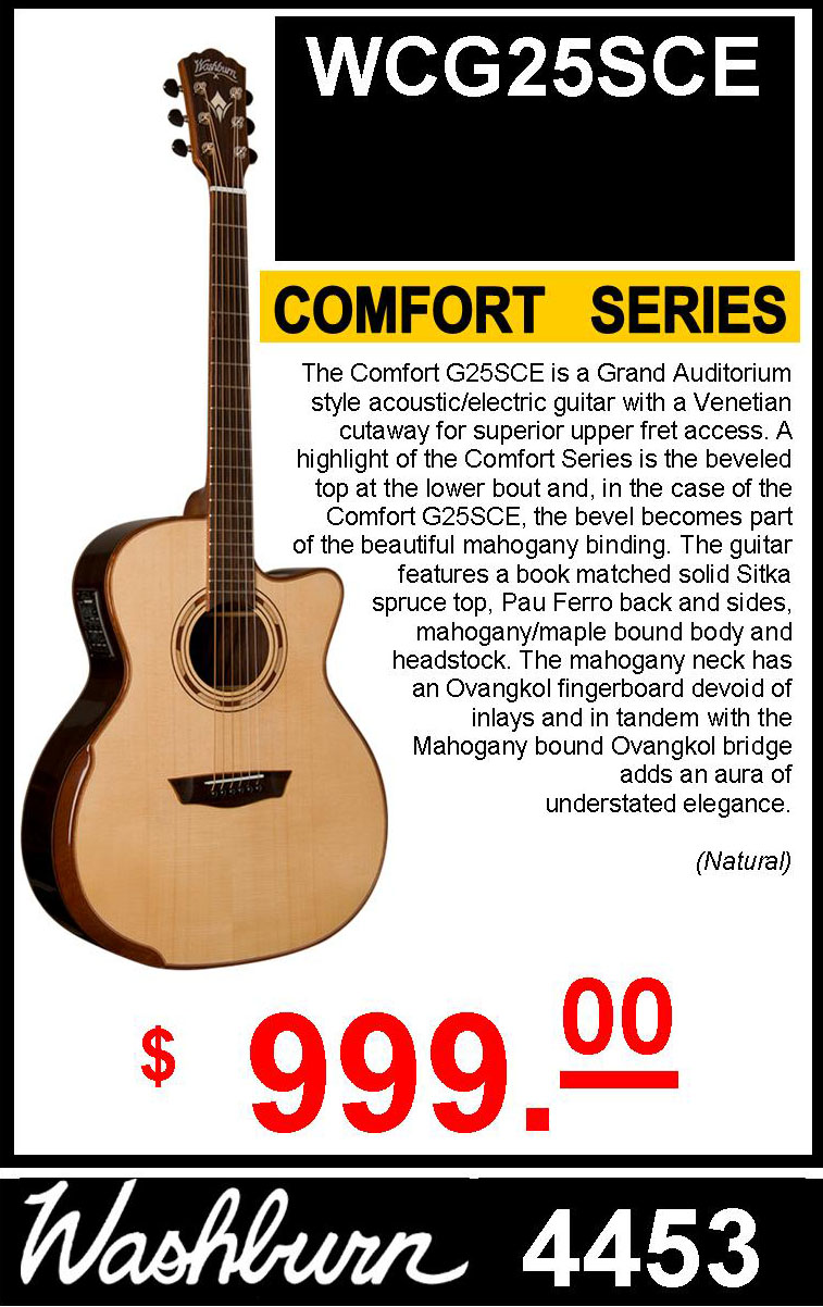 COMFORT SERIES GUITARS Washburn WCG20SCE Comfort Series Grand Auditorium Acoustic Electric Guitar - $779.00 Washburn WCG25SCE Comfort Series Grand Auditorium Acoustic Electric Guitar - $999.00